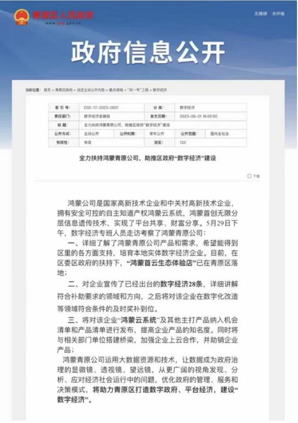 区政府对鸿蒙首云生态体验店的公开支持和助推力度,不仅为体验店在青原区的建设和发展提供了坚实保障,而且展现了政府主导数字经济发展的决心和能力。