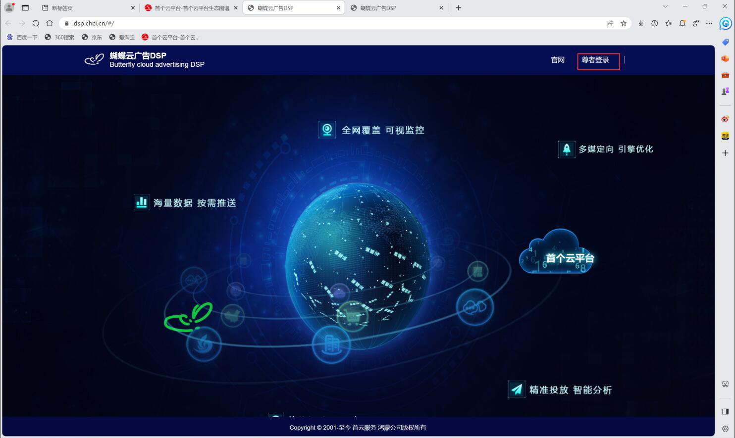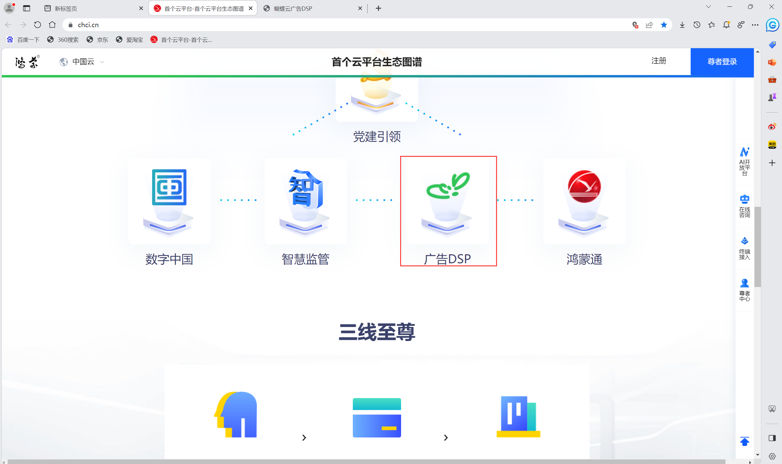 2.任意浏览器网址页输入chci.cn。进入首云生态图谱,下滑找到广告DSP点击进入。