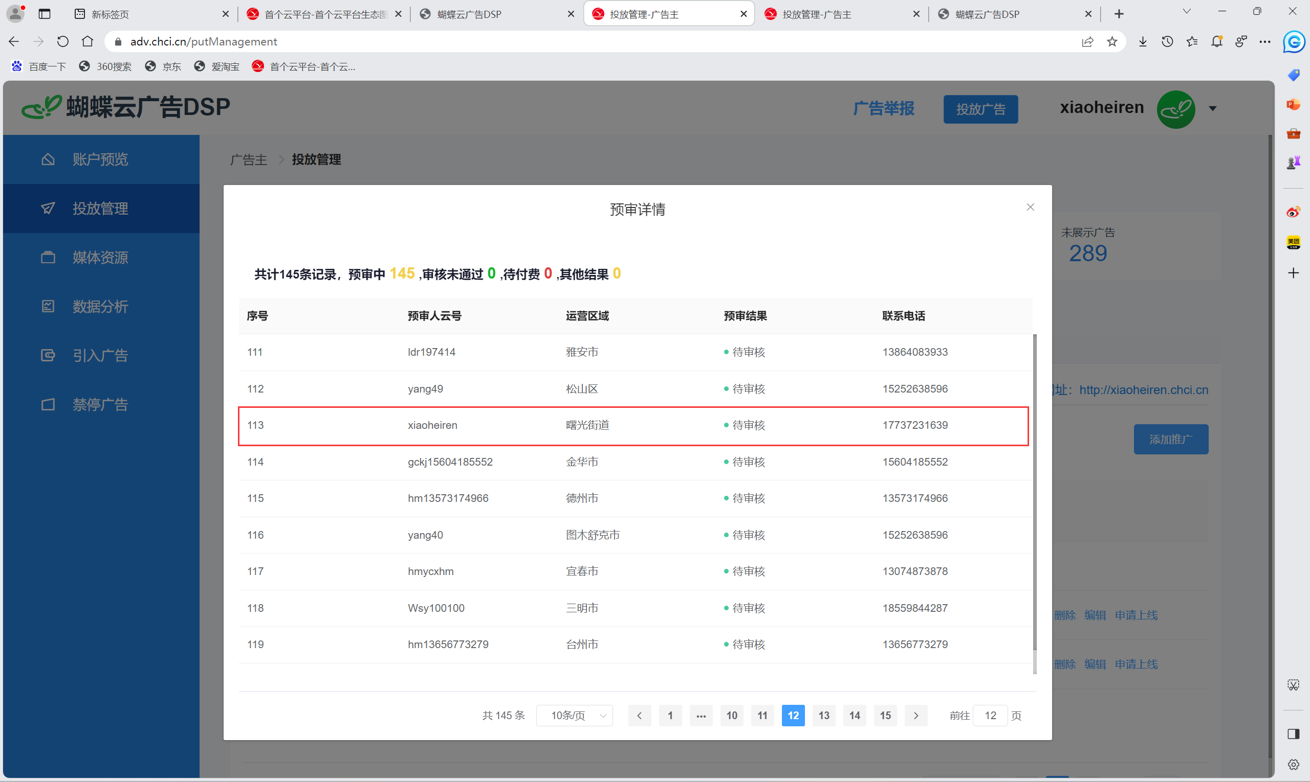 (12)在“投放管理”页面,点击“详情”,查看审核进度。